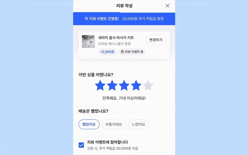 선착순으로 리워드를 제공하여 빠른 리뷰 업로드를 독려해 보세요.