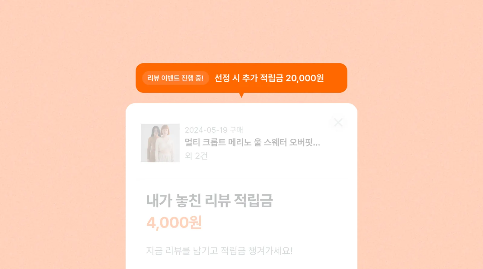 작성할 리뷰가 있는 고객들에게 위젯 내에서 캠페인 안내 배너가 보이며,