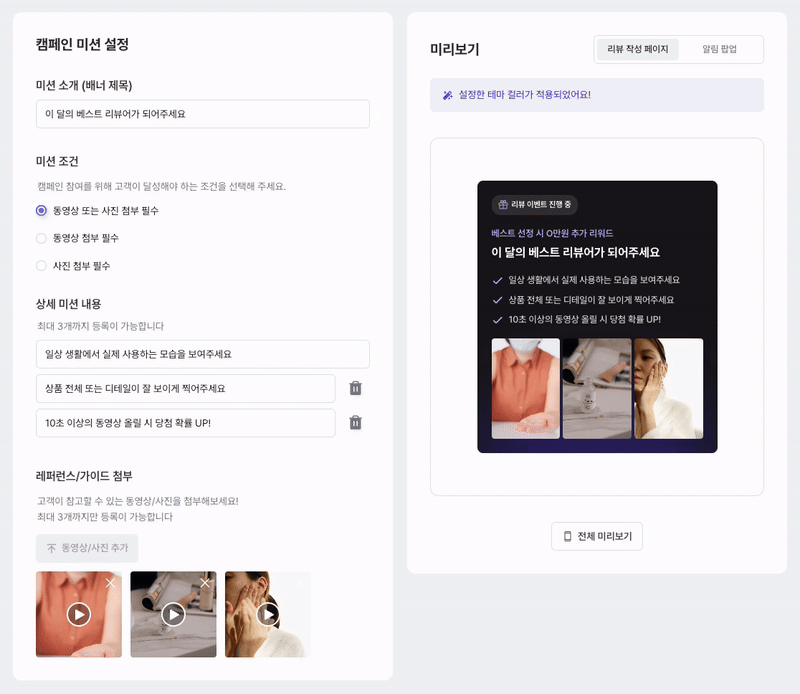 리뷰도 마케팅 캠페인처럼 캠페인을 만들어 운영해 보세요!