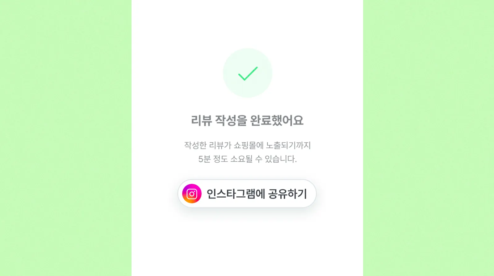 리뷰 작성 완료 화면에 인스타그램에 공유할 수 있는 버튼이 있어요.